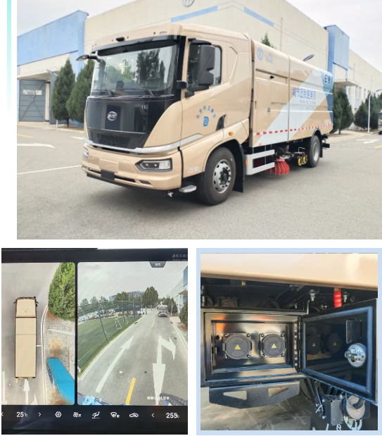 北京环卫集团装备公司技术中心负责人郝学维介绍说,“车辆搭载360度全景影像和盲区监测系统,能实时监测周边路况与障碍物,主动发出预警,提醒避让,同时车辆搭载上装一键启停、红绿灯等待时智能关水等功能,注入满满的环保理念和科技元素。”